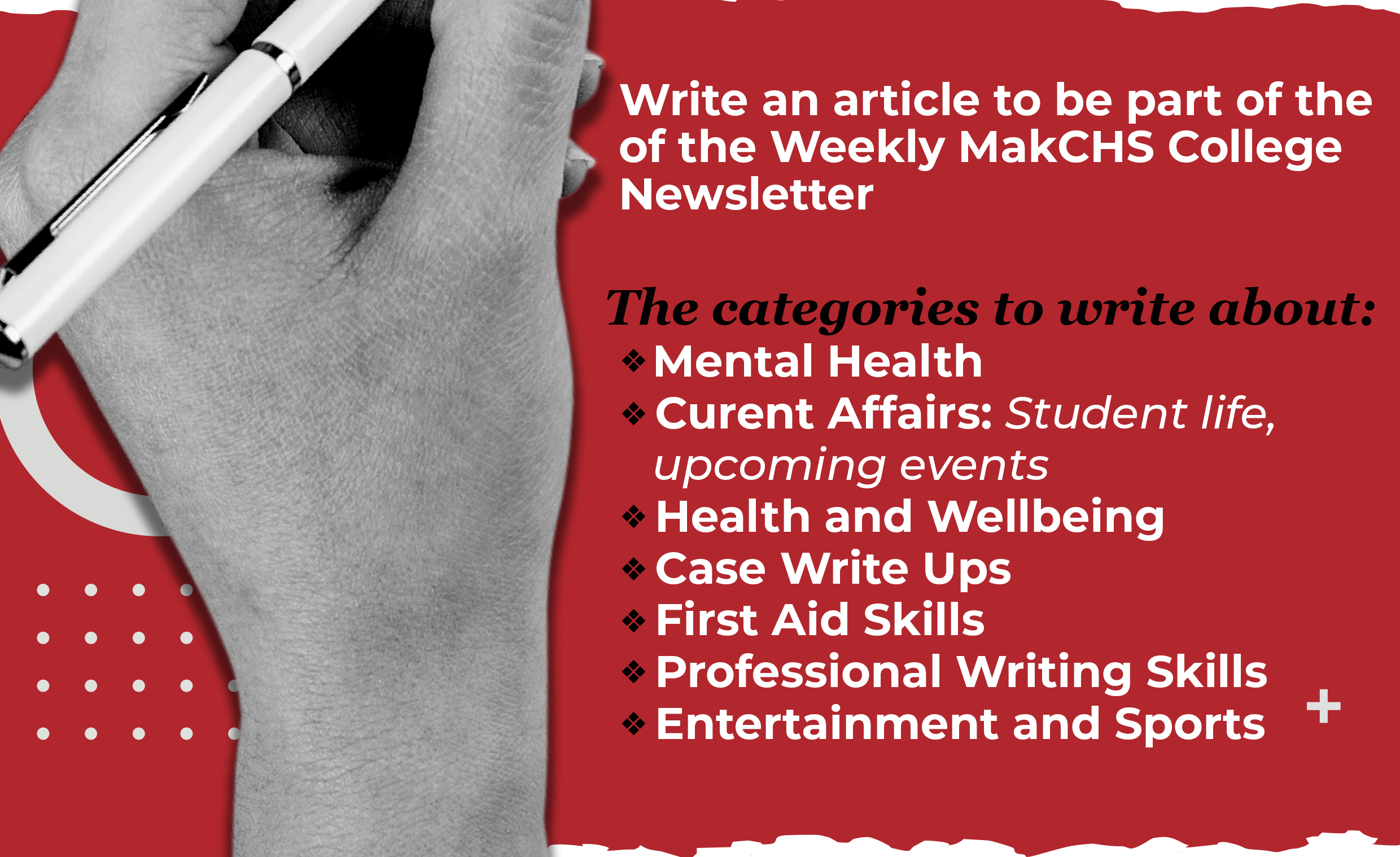The Makerere University College of Health Sciences Students Association (MAKCHSSA) and Makerere University Medical Students Association (MUMSA)directly support the Makerere University College of Health Sciences Research and Writers Club. The Research and Writers Club has come up with a wonderful opportunity to allow for wider participation from the student body in the form of a weekly newsletter. The exciting thing about this weekly newsletter is that it will speak to the day-to-day occurrences and highlight issues of concern to build a reading and writing culture, and support and strengthen professionalism all to promote lifelong learning.